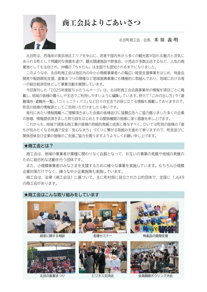 このたび、北谷町商工会会員名簿「ちゃたうんページ2025」を発行いたしました。