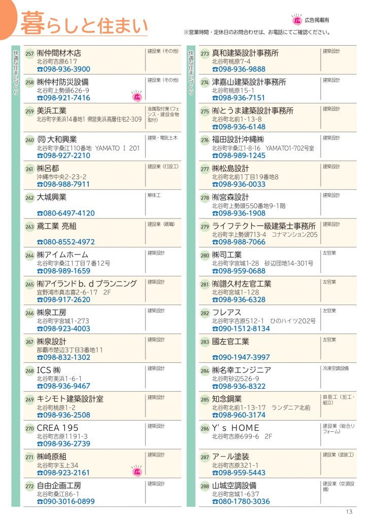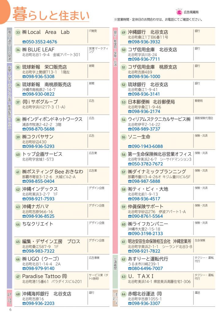 本誌は、北谷町内の各世帯および関係機関への配付を通じて、会員事業所の紹介や地元店舗の利用促進、地域生活に役立つ情報発信を目的として作成しております。