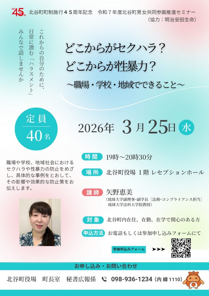北谷町男女共同参画推進セミナーを開催します。