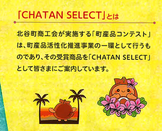 北谷町商工会が実施する「町産品コンテスト」は、町産品活性化推進事業の一環として行うものであり、その受賞商品を【CHATAN SELECT】として皆さまにご案内しています。